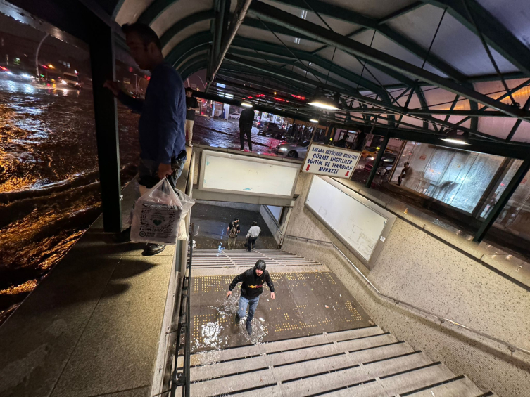 Beşevler metro istasyonu da su altında kalarak yolcuları mahsur bıraktı.